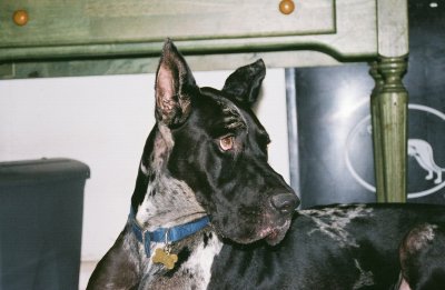 Barney is a 2 yr old Harlequin with cropped ears. He is quite petite. He is what we would call apartment size! He looks exactly like his bigger counterparts, but looks like he was washed in hot water and shrunken! He gets along with other dogs and cats. He is quiet and very nice to live with. His owners had a baby and had to place him. |