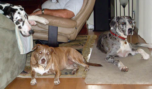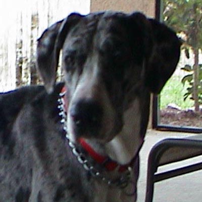 13. Lola. 90lbs 14 month old Harlequin female. Lick sores on front