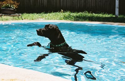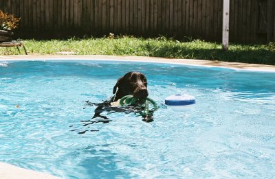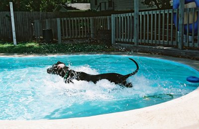 in the pool twice today, but that didn't stop him from trying to get in with