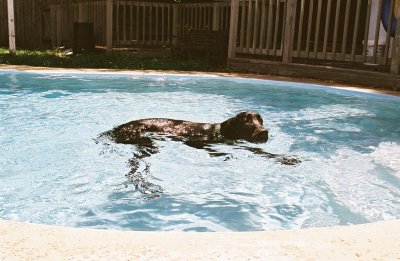 me while I was swimming--he'd go as far as the second step!!! |